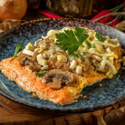 Морской язык, горбуша, майонез, мука, яйцо, соль 125 г